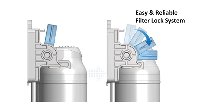 Với hệ thống khóa lọc mới tiện lợi và an toàn, cùng 8 điểm kết nối ít hơn trên đường dẫn dòng nước, sản phẩm giảm thiểu rò rỉ và đảm bảo độ tin cậy cao hơn.