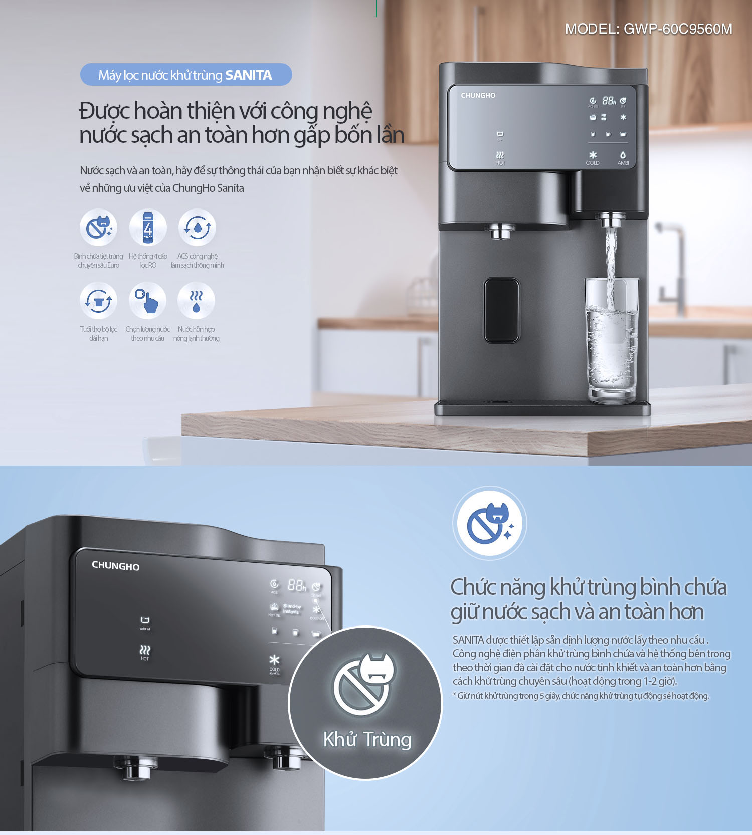 Máy lọc nước ChungHo SANITA Hot-Cool – Giải pháp nước sạch nóng lạnh cao cấp chuẩn Hàn Quốc cho gia đình hiện đại